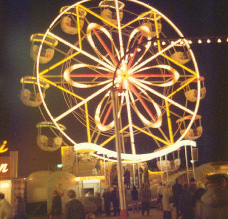 Geschichte/Verbleib: Das Stahlrad, das im Liegen montiert und anschließend hydraulisch aufgerichtet wurde, wurde um 1976 angeschafft und bis zum Ende der Saison 1983 betrieben. 1984 wurde es nach England verkauft.